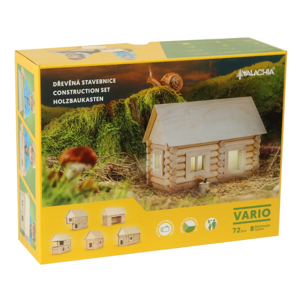 A bükkfa elemek kézre állnak, biztonságosan használhatók és más Vario készletekkel is kombinálhatók. Az építés fejleszti a kézügyességet, a logikát és a türelmet, miközben egy időtálló, tartós játék kerül a polcra.