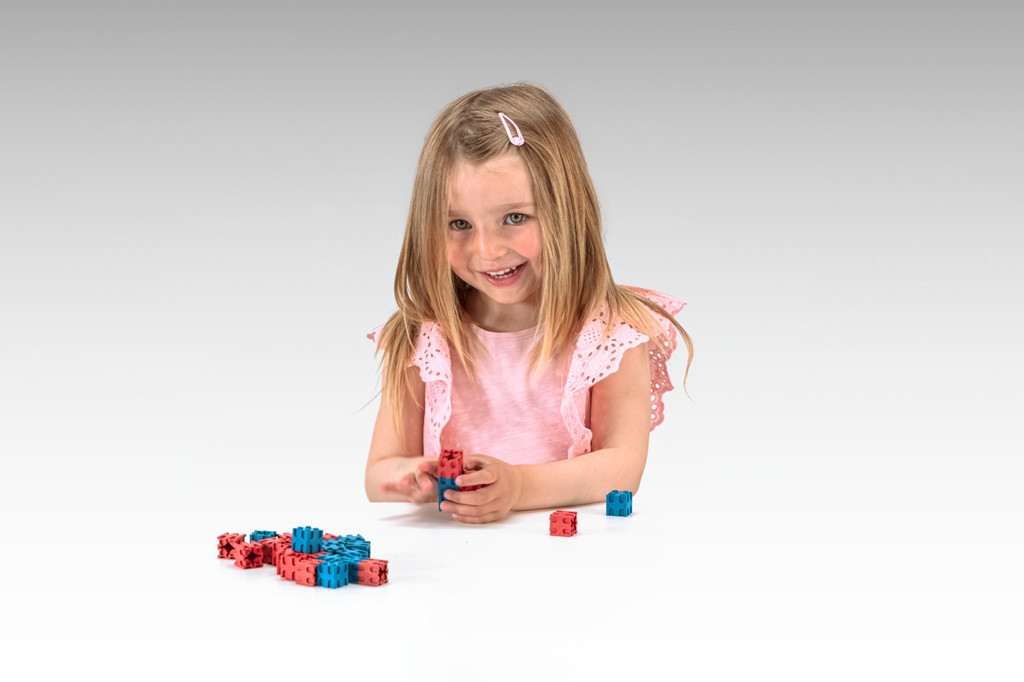 Kocky v červenej a modrej farbe sú univerzálna didaktická pomôcka pre deti od predškolského veku. Vďaka možnosti spájania zo všetkých strán aj s posunom sú ideálne na stavbu priestorových modelov, nácvik jemnej motoriky i základných početných úkonov. Vďaka ich veľkosti sa s nimi pohodlne manipuluje a ľahko sa používajú aj pri meraní, vážení a porovnávaní. Vyrobené z pevného 100% recyklovaného dreva s certifikáciou PEFC, ktoré je po použití opakovane recyklovateľné. Zabalené v kartónovej krabičke s návodom. Hlavné vlastnosti: 50 modrých a 50 červených kociektrénuje stavbu 3D tvarov a geometrických teliesrozvíja jemnú motoriku pri spájaní kociekpodporuje predstavivosť a tvorivosťučí sčítanie, odčítanie, násobenie a deleniepomáha porovnávať dĺžky a hmotnostirozvíja triedenie a vnímanie farebných vzorovzlepšuje koncentráciu pri práci podľa návodu či predlohyvyrobené zo 100% recyklovaného dreva s certifikáciou PEFCvyrobené v Nemecku