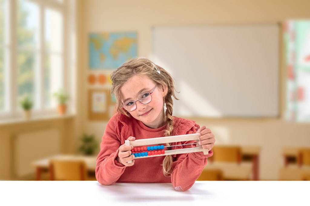 Klasszikus, fából készült számolókeret 20 golyóval, amely segít megérteni a számok közötti kapcsolatokat és arányokat. Két sorban (2×10) lehet a golyókat ide-oda csúsztatni, így remek támogatás a kezdeti matematikai gyakorláshoz.