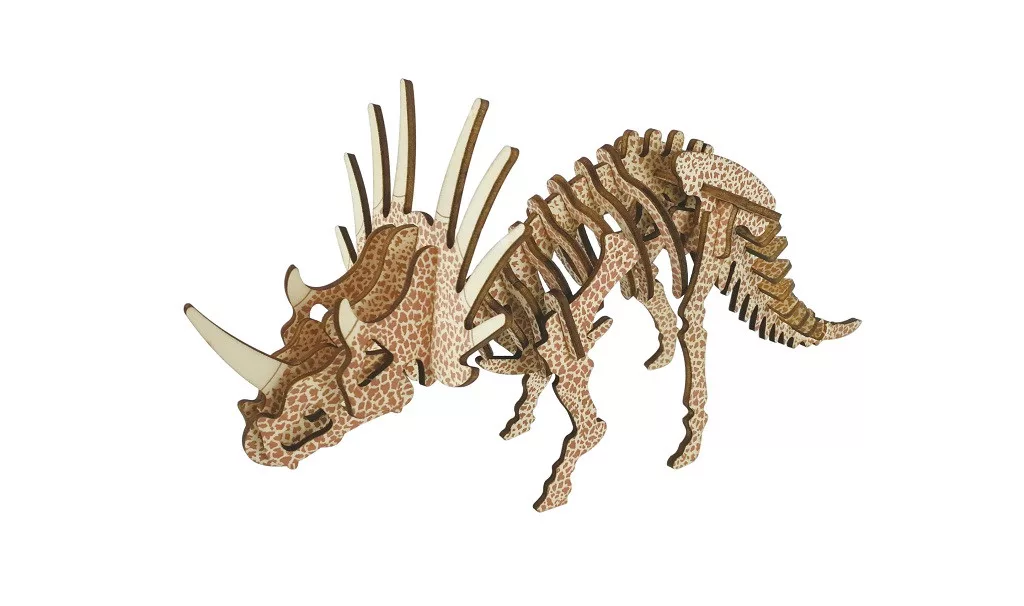 Táto séria drevených hračiek 3D puzzlí reálne imituje kostry dinosaurov, ktoré môžu inšpirovať deti k záujmu o prehistorický život našej planéty, takže sa z každého malého dieťaťa okamžite stáva nadšený paleontológ. Umocnené možnosťou, že si deti sami veľmi jednoducho môžu zostaviť prírodnú alebo farebnú drevenú kostru vlastnými silami, zvyšuje ich vzťah k drevenej hračke ako takej, ale hlavne pod ich rukami av ich očiach oživuje praveké tvory nebývalých rozmerov ohraničených iba ich nekonečnou fantáziou. Drevené 3D puzzle nie sú určené iba na vystavenie na polici, ale pretože sú ich diely múdro spojené, môžu byť použité ako rovnocenné drevené hračky pre každodenné hranie. Sú vyrobené z 3 alebo 5 mm hrubej kvalitnej preglejky a sú dodávané v nezloženom tvare, balené vo fólii. Jednotlivé diely z drevenej preglejky jednoducho vytlačíte a podľa priloženého návodu skladáte krásne plnohodnotné drevené hračky. Deťom sa tak rozvíja ich myslenie, jemná motorika a predstavivosť. Drevené 3D Puzzle nemusíte lepiť lepidlom, potom ich je možné kedykoľvek rozložiť a znovu zložiť. Odporúčame si ponechať návod na stavbu. Prírodné drevené 3D puzzle si môžu deti aj samé vyfarbiť podľa svojej fantázie. Farebné drevené 3D puzzle sú opatrené kvalitnou potlačou. Sú určené deťom od 3 rokov a spĺňajú všetky normy EÚ. Upozornenie: Nie je vhodné pre deti do 3 rokov, pretože obsahuje malé súčasti - hrozí nebezpečenstvo udusenia. Baliaci materiál nie je hračka. Hlavné vlastnosti: prírodné drevené 3D puzzlerozvíja jemnú motoriku a predstavivosťvhodné od 8 rokovjednoduchá obtiažnosť